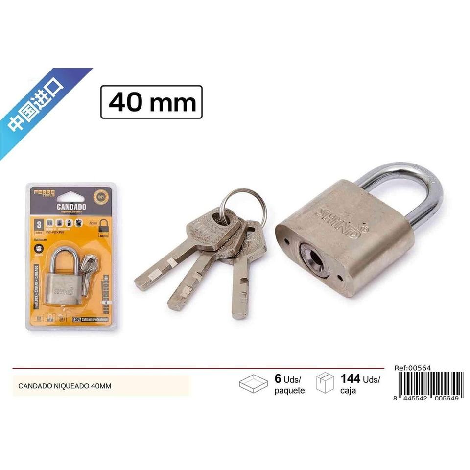 Nickel-plated padlock with rounded corners 40mm - Security and locks