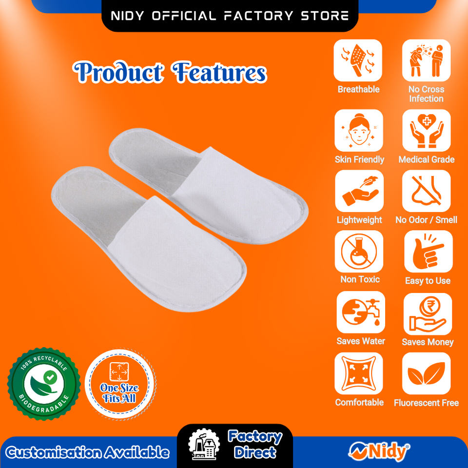 Nidy Disposable Spa Slippers Hygienic Travel-friendly Salon Footwear for Hotels & Guests for Beauty & Personal Care
