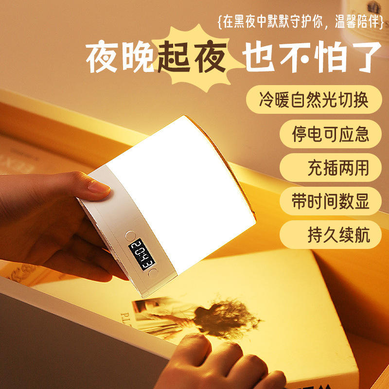 Night Light With Time Display Remote Control Led Round Shape Usb Powered Color Changing Bedside Lamp