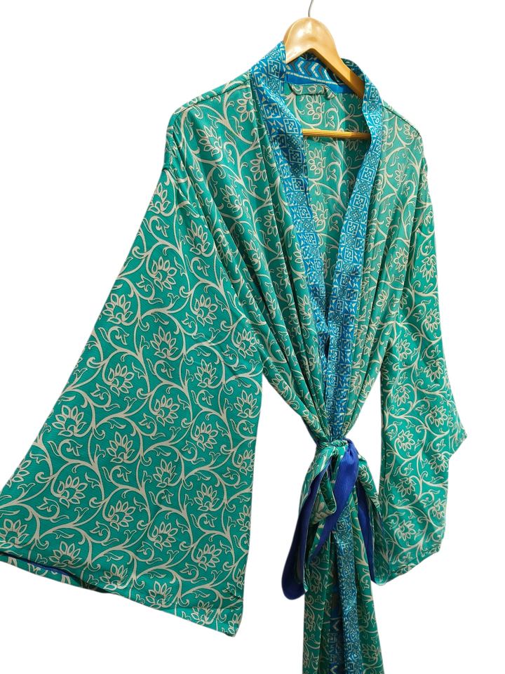 Night Wear Bell Sleeves Swim Wear Soft Silk Bathrobe Multi Color Robe Night Wear Robe Indian Vintage Recycled Silk Sari Kimono,
