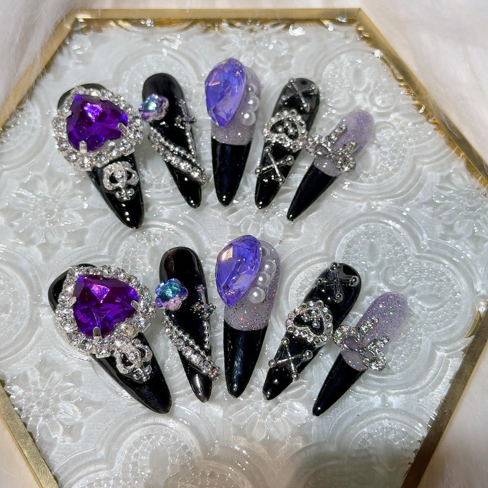Nightclub Queen Manicure Dark Wear Armor Removable Repeated Wear Luxury Resin Half Cover Nail Patches Almond Shape Long Nails CE