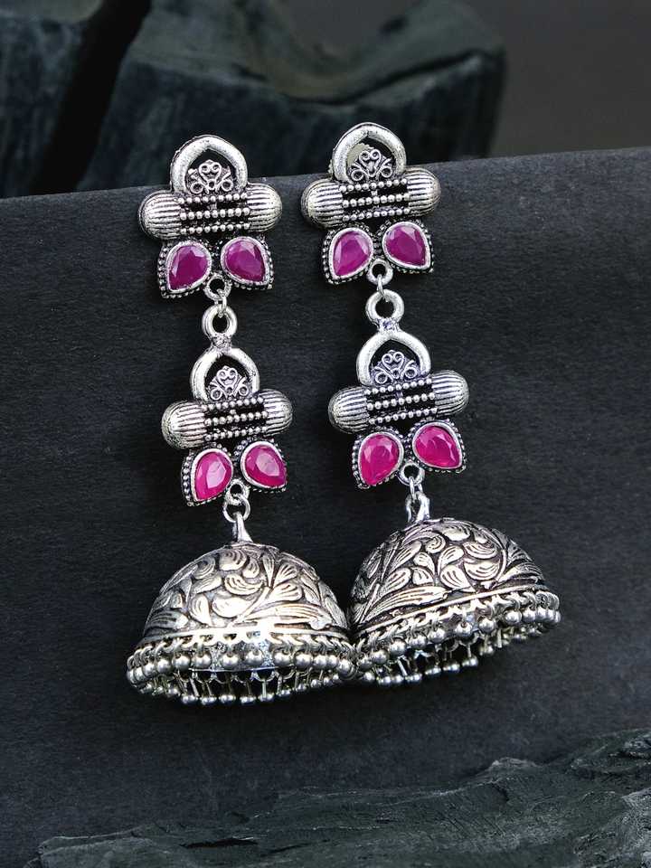Product Name:Nihar Jhumka- Oxidised Silver Plated Floral Jhumka Earrings