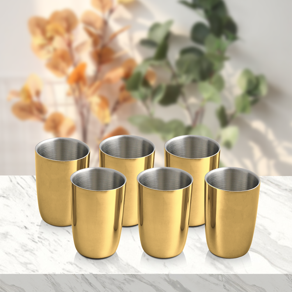 Nikki 6 PCS Double Wall Stainless Steel Tea Cups & Saucers Gold PVD Coating Elegant Set for Tea Lovers