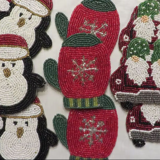 Nine Beaded Coasters Coasters Penguins Winter Mittens and Christmas Gnomes