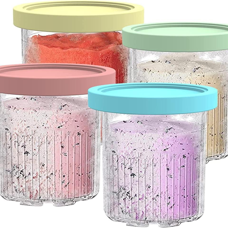 Ninja Creami Ice Cream Cups 4-Piece Set Compatible With NC500 NC501 Series Solid Color Design For Homemade Desserts