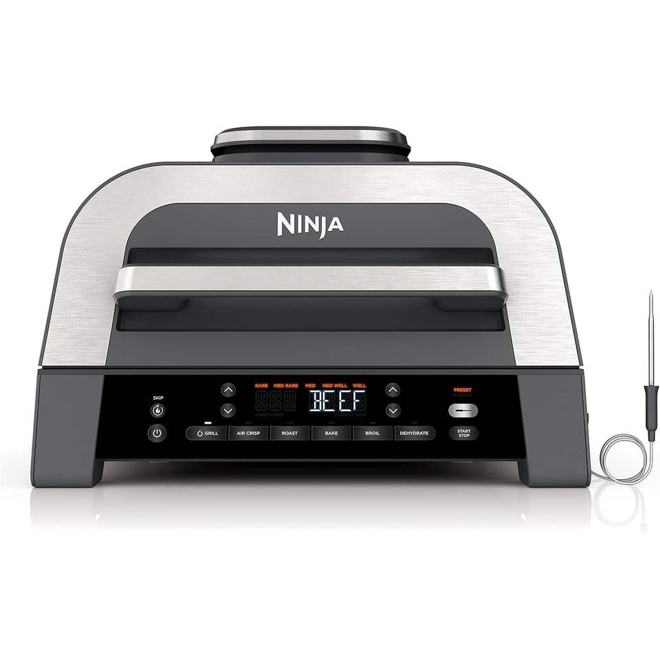 Ninja DG551 Foodi Smart XL 6-in-1 Indoor Grill & Air Fryer with Ceramic Thermometer 1760W-Roast Bake Broil Dehydrate