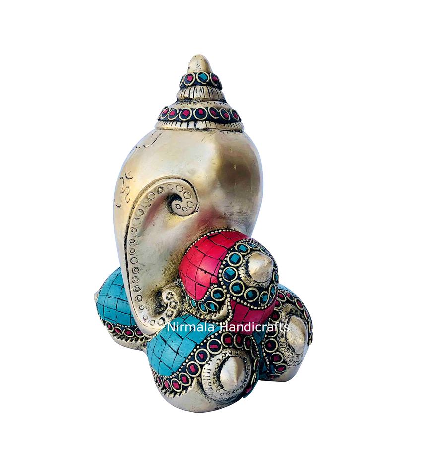 Product Name:Brass Craft Lord Ganesha Statue Handmade Multi Stone Finish