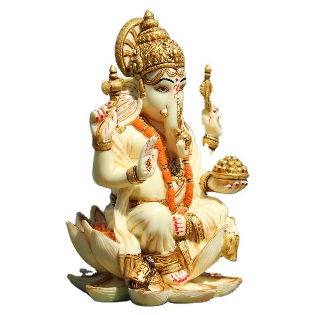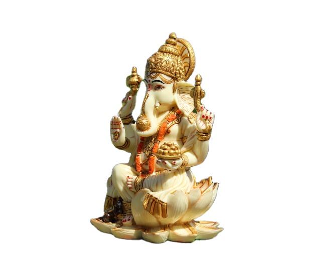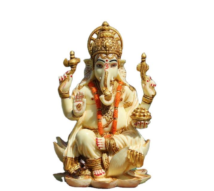 Nirmala Handicrafts Handmade Marble Dust Ganesh Statue White Resin Lord Ganesha Ganpati Indian God Finugrine Home Decor