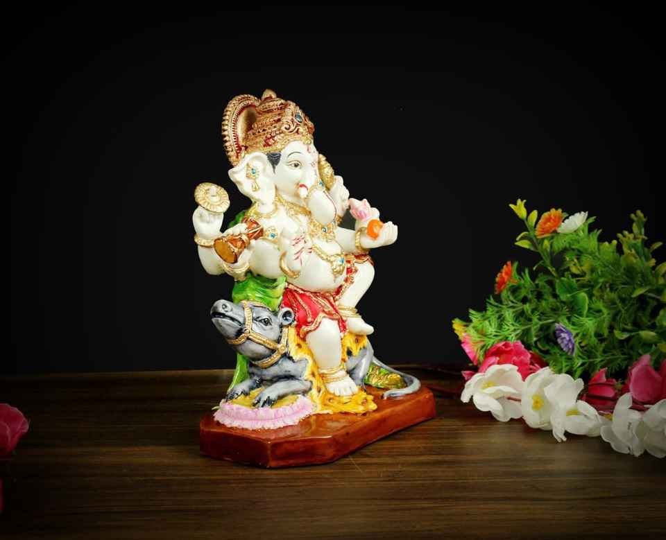 Nirmala Handicrafts NH3630 Handmade Resin Ganesh (Gajanan) Statue with Mushakraj Base for Home & Temple Decor Made in Rajasthan