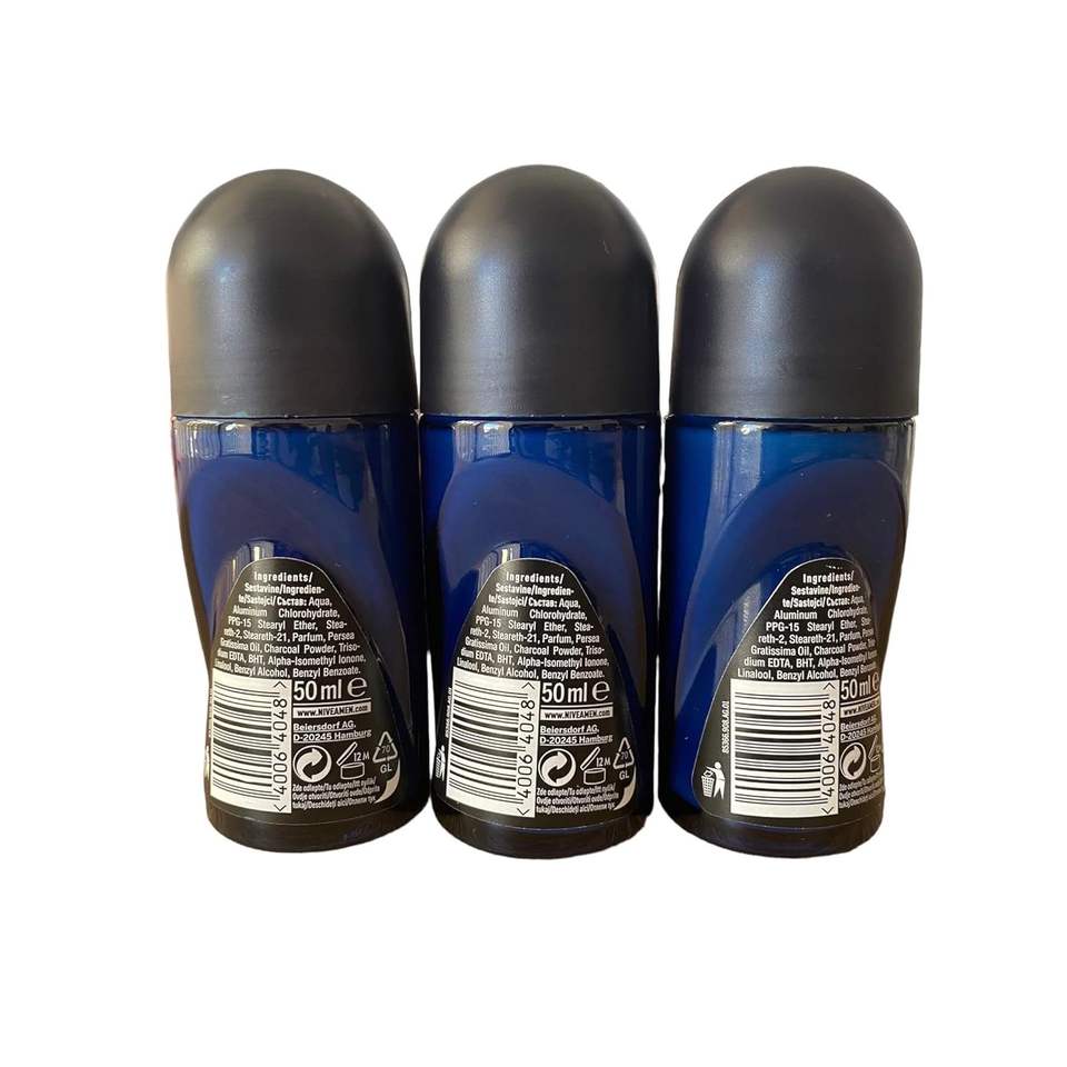 Nivea for Men Anti-Perspirant Deodorant Roll-On 48h 1.7oz/50ml Dark Wood + Espresso + Amazonia with Strawberry Smell Pack 3