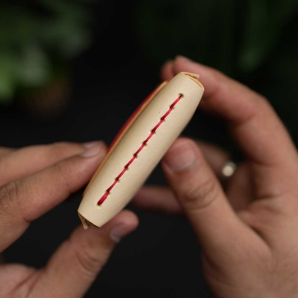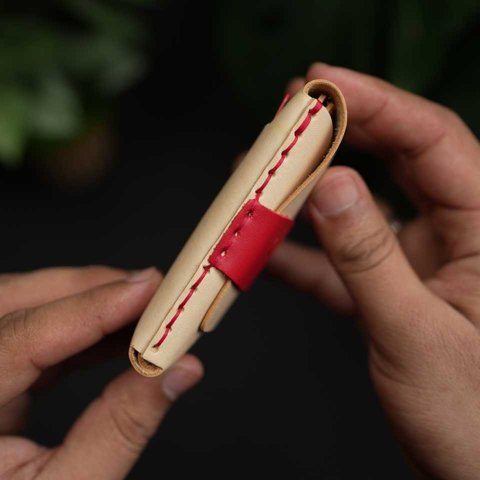 WF Leathercraft No. 101 All-in-One Credit Card Wallet Handmade Veg Tan Leather & Red Combination 5 Year Warranty