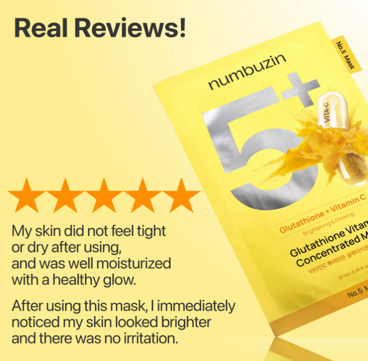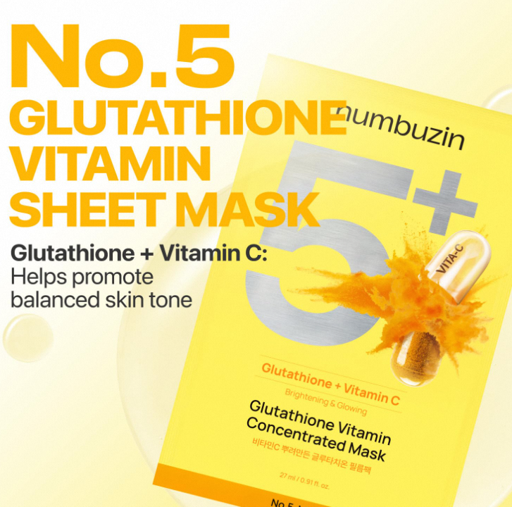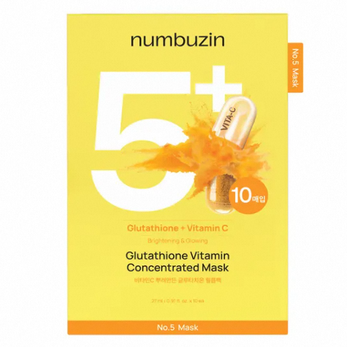No.5+ Glutathione Vitamin Concentrated Mask 10ea Korean Brightening Face Mask Dark Spot Correcting Glow Boosting Skincare