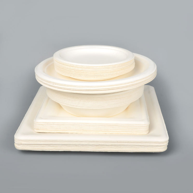 No Add PFAS 6 8 10 Inch Compostable Bio-Degradable Sugarcane Bagasse Pulp Paper White Disposable Square Plates Made From Plastic