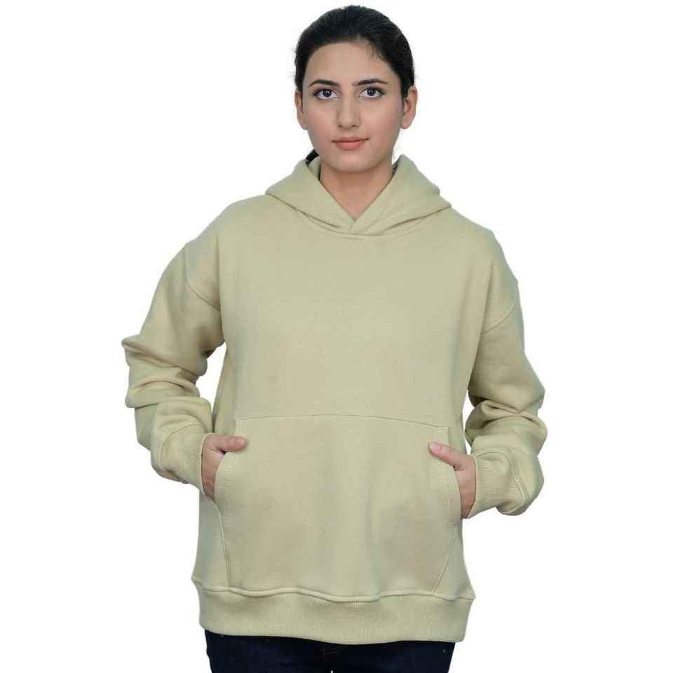 No Import Duty American Cotton Beige Pullover Hoodie for Women Soft Fleece Customizable Streetwear Warm Casual Sweatshirt USA