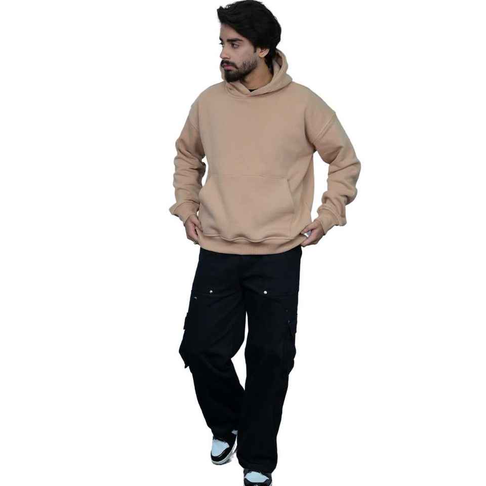 No Import Duty American Cotton Beige Pullover Hoodie for Men Soft Fleece Customizable Streetwear Warm Casual Sweatshirt