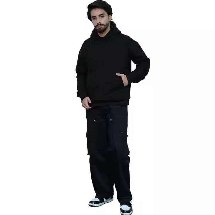 No Import Duty American Cotton Black Pullover Hoodie for Men Soft Fleece Customizable Streetwear Warm Casual Sweatshirt