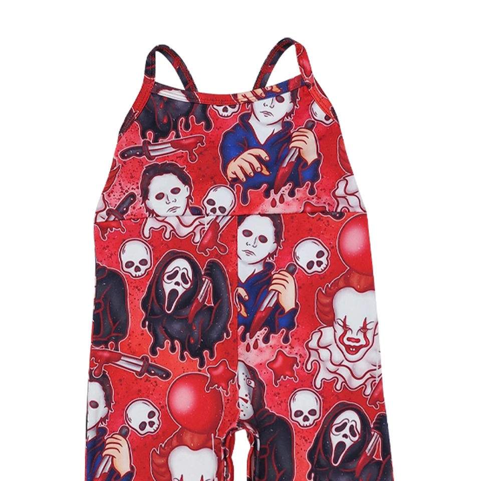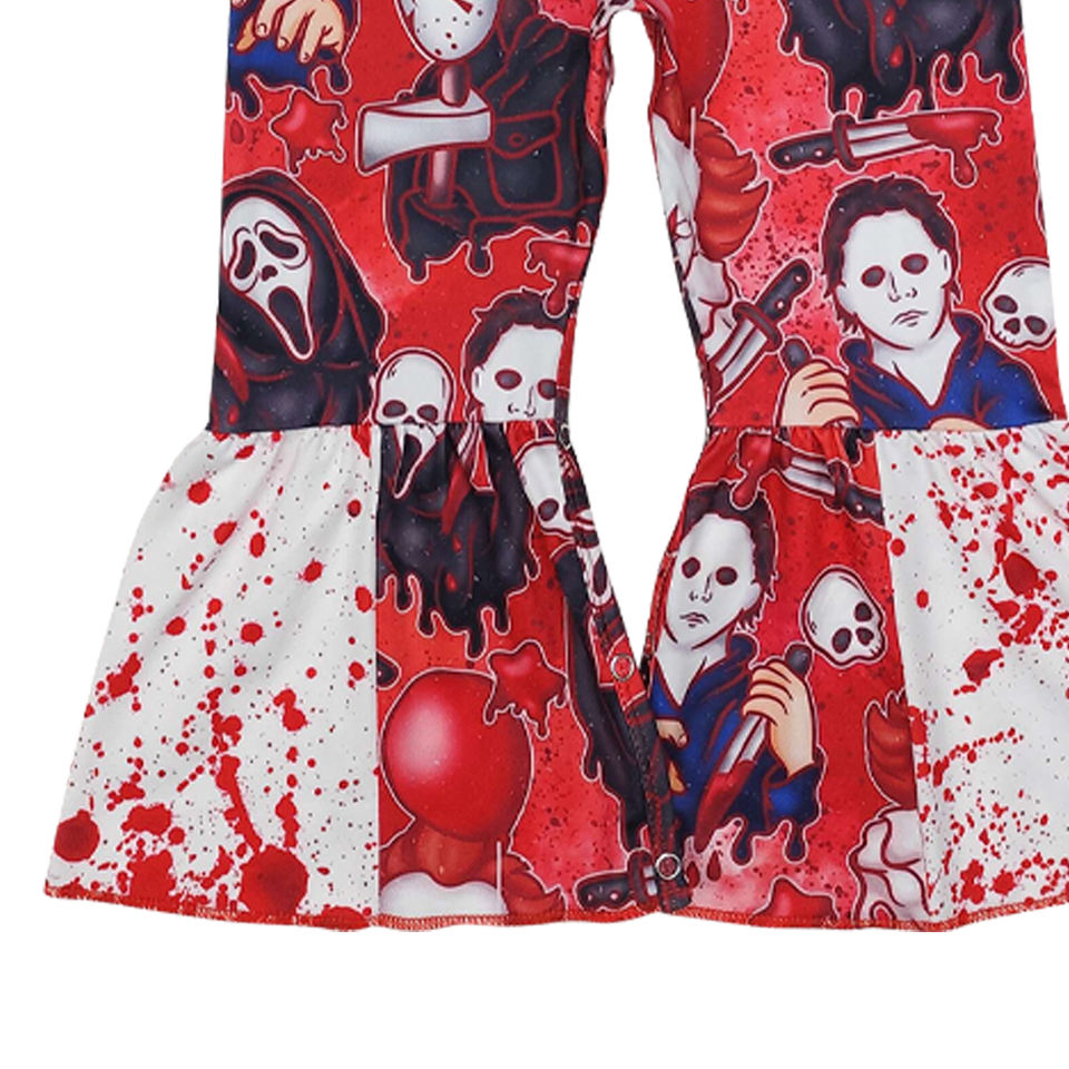 No MOQ RTS Infant baby girl Red clown halloween print kids wholesale romper long sleeve RTS jumpsuit child set