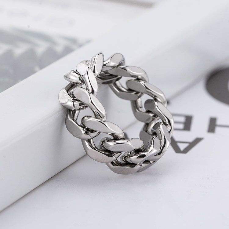 No Tarnish 18k Gold Men Women Stainless Steel 8mm Wide Band Ring Jewelry Hiphops Thumb Rings Fashion Cuban Link Chain Rings