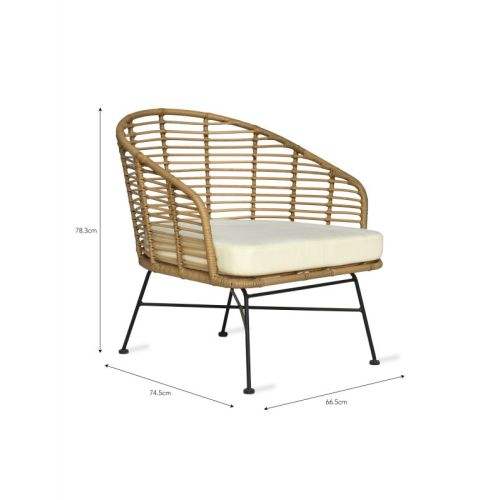 Noah Modern Aluminum Lounge Chair for Outdoor Water-Proof Cushion with Rattan Wicker Natural Finish for Events and Parks