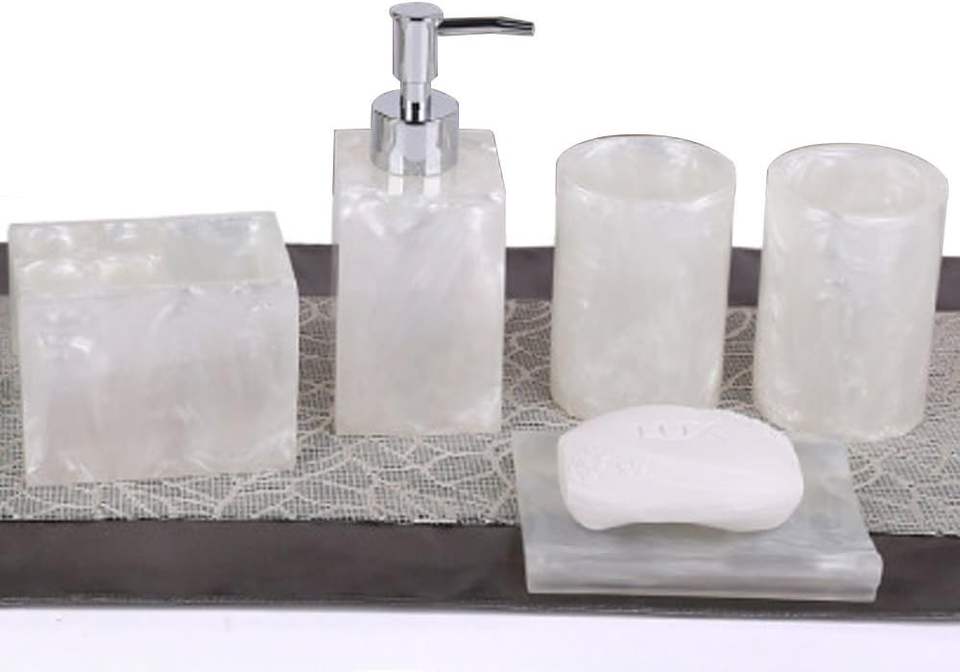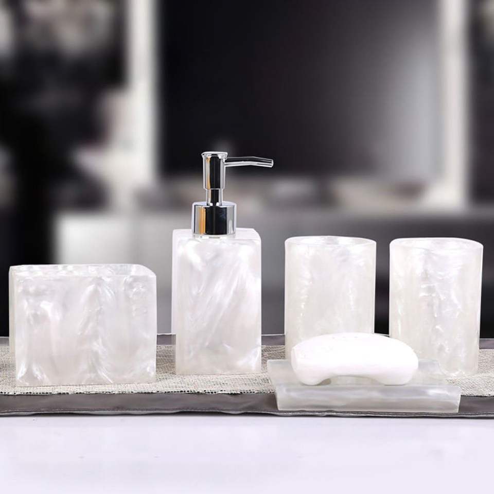 Nominal Price Pack of 5 White Resin Bathroom Accessory Set Soap Dish Dispenser Toothbrush Holder & Tumbler on Sale!