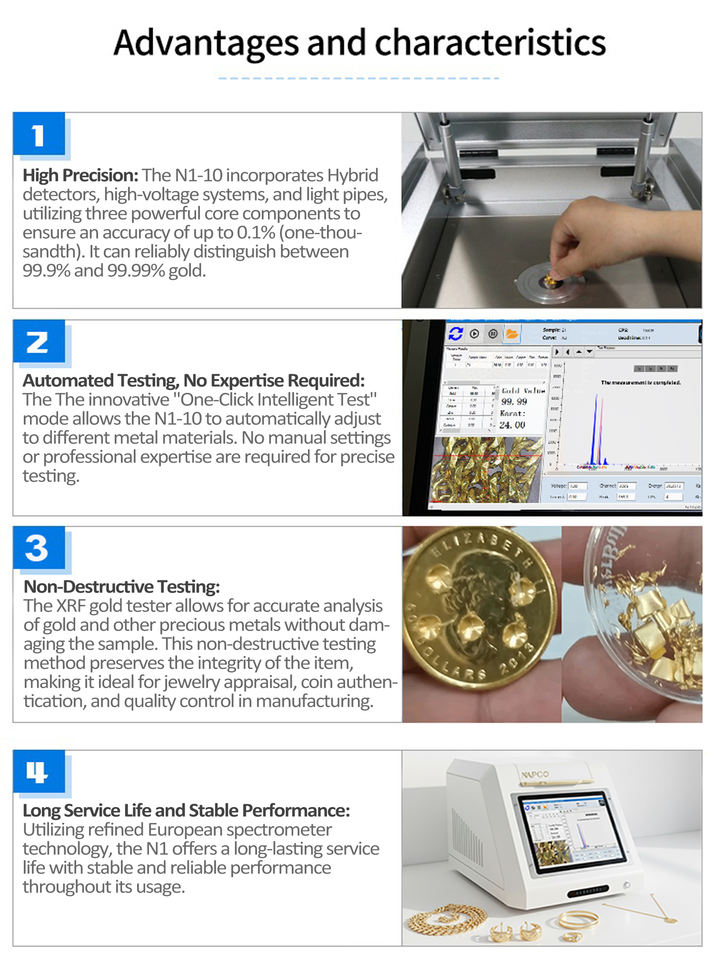 Non Destructive Precious Metal Tester & High Accuracy Jewellery Testing Analyzer by XRF Technology