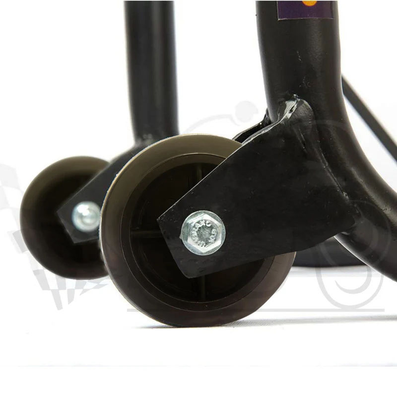 Classic Black Non-Dismantable Rear Paddock Stand with 350kgs Weight Capacity Skate Wheels for Motorcycles Rear Paddock Stand