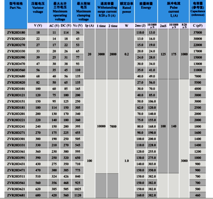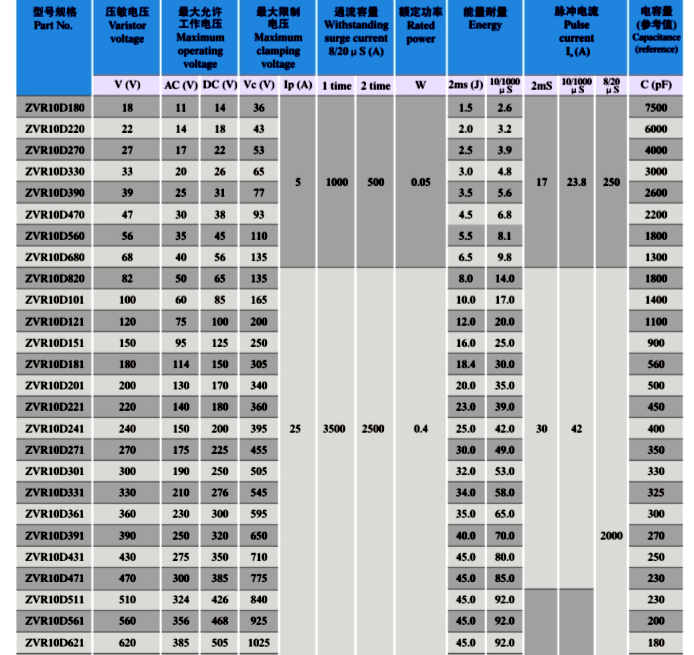 Non-Linear Voltage Clamping Zinc Oxide Varistor 250/400VAC TYPE DCF Series for Precision Overvoltage Control Power Circuit Noise