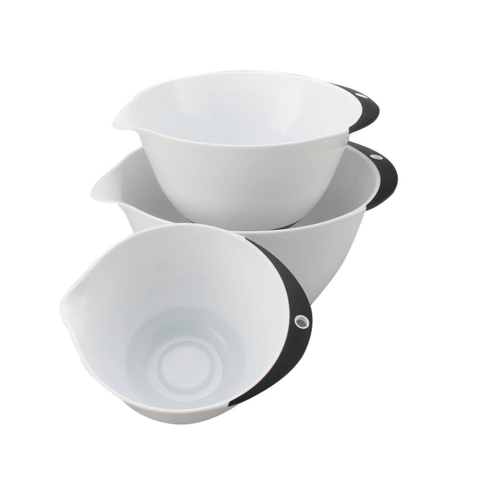 Non Slip Bottom - Three Sizes Small Large Capacity for Kitchen Baking or Salad - White Multi Plastic Mixing Bowls
