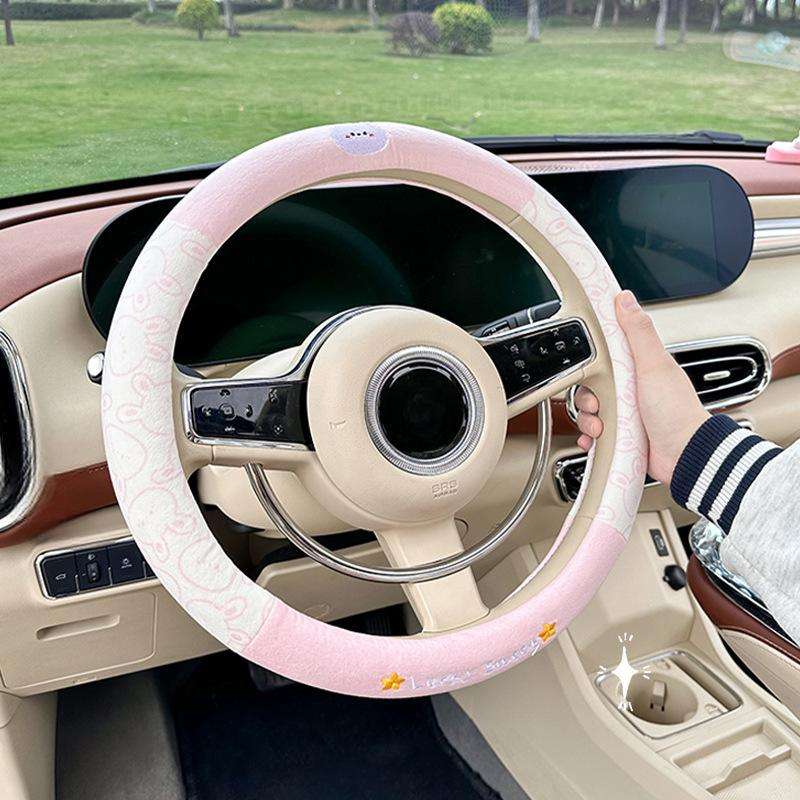 Non-Slip Cartoon Print Steering Wheel Cover Plush Short Pile Anti-Freeze for All Seasons Steering Wheel Cover
