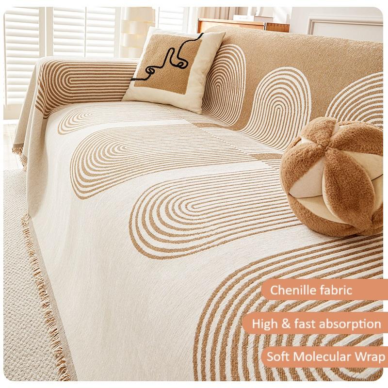 Simple Chenille Beige 90x180cm Sofa Cover Thickened Home Decoration Kids & Pets Friendly Slipcover