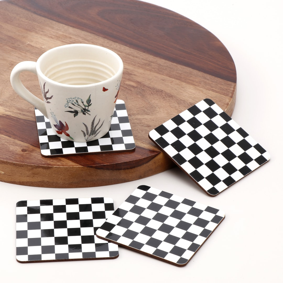 Non-Slip Pad Cup Coasters Acacia Wood Over Printed Tea Serving Coasters 4 Pieces Set Kitchen Accessories Coasters Resin