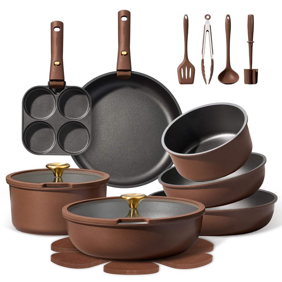 Non-Stick Ceramic Cookware Set 21 Piece Kitchen Flat Bottom Oven Safe Multi Functional