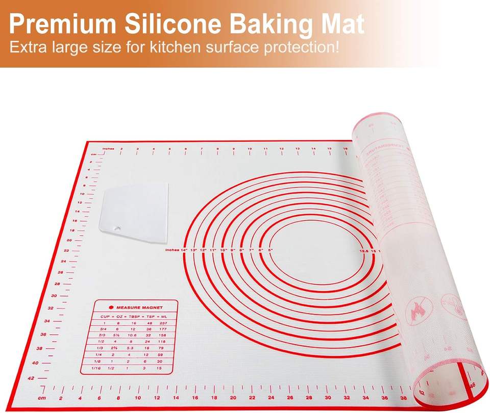 Non Stick Silicone Baking Mat Dough Rolling Mat Heat Resistant Pad Pastry Board with Measurement With Dough Rolling Pin Cutter