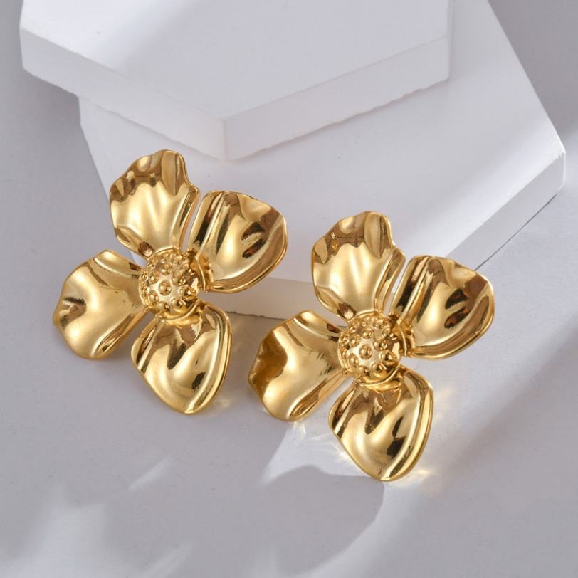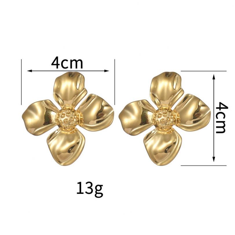 Non Tarnish Bulk Vintage Stainless Steel 14k Gold Boho Elegant Funky Waterproof Large Flower Earring for Women