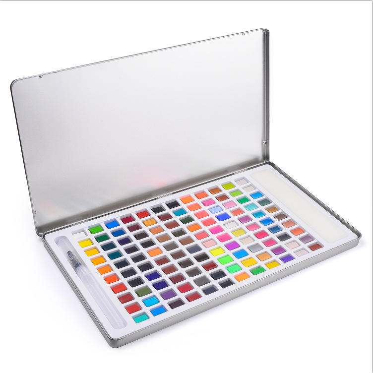 Non Toxic Hot Sale Chinese Premium Metal Box 56 Colors Watercolor Paint Set Pad Palette
