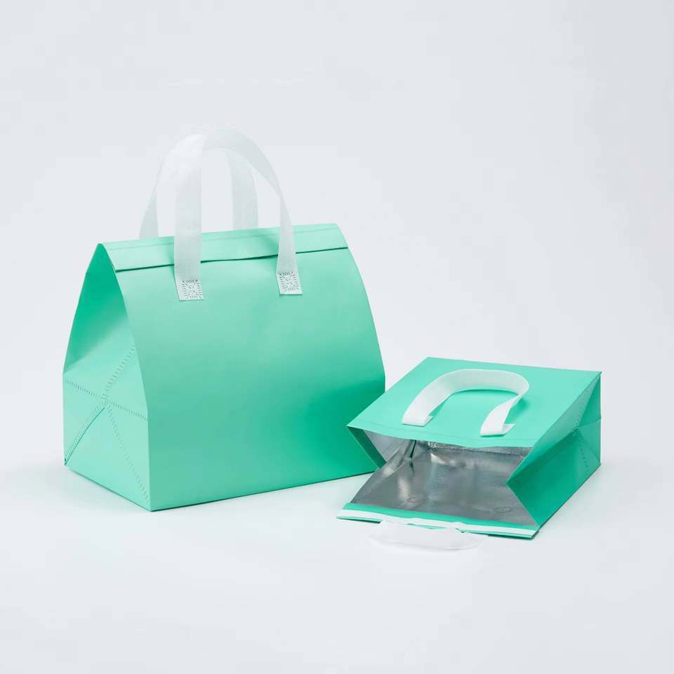 Non Woven Custom Eco Disposable Takeaway Cooler Package Tote Bum Bags Wiht Aluminum Foil Insulated Thermal Soft Handle Lunch Bag