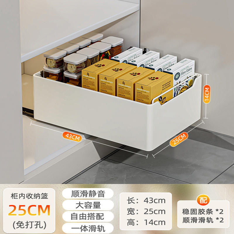 Non-drilled kitchen pull-out storage rack sink basket cabinet slide rail drawer storage box seasoning rack