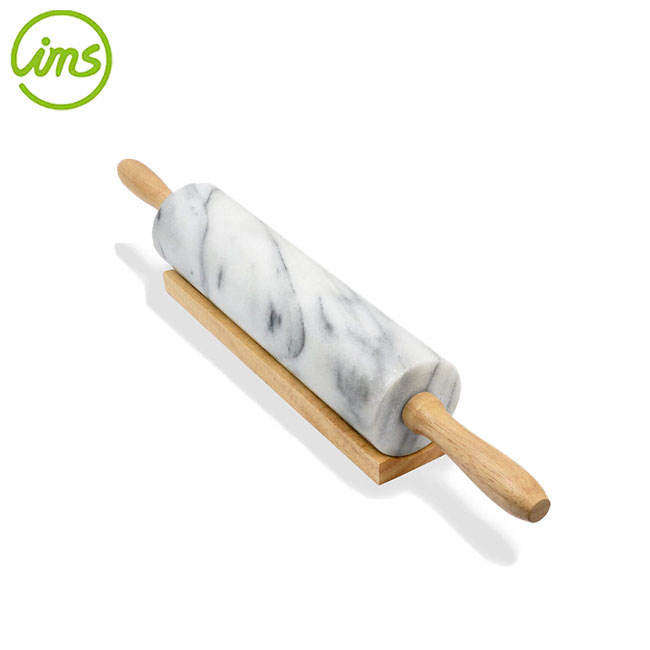 Non-stick Marble Rolling Pin With Wooden Handle and Cradle
