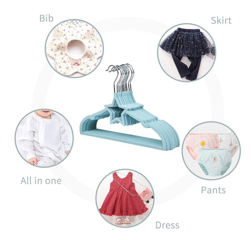 Single-Tier Slim Plastic Kids Flocked Swivelable Hooks Nonslip Children's Clothes Hanger for Wardrobe Use