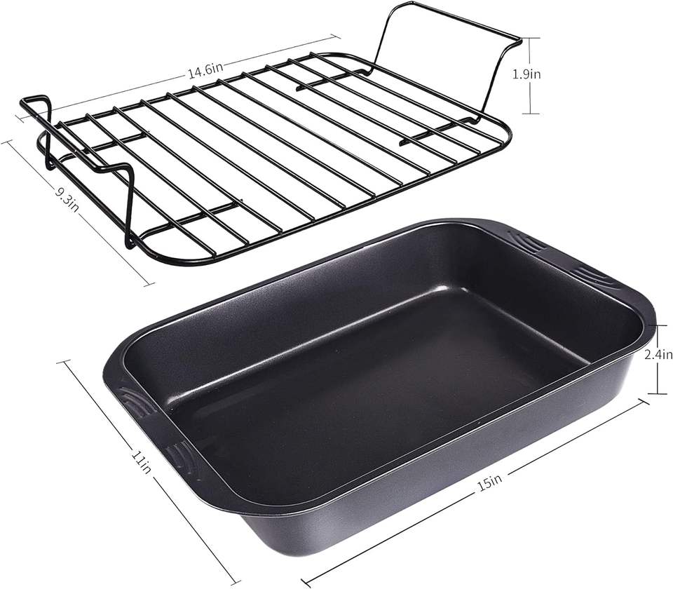 Nonstick Roaster Nonstick Roasting Pan with Rack Great For Roast Chicken Roasts And Turkeys 15 Inch x 11 Inch 5.8 QT Gray