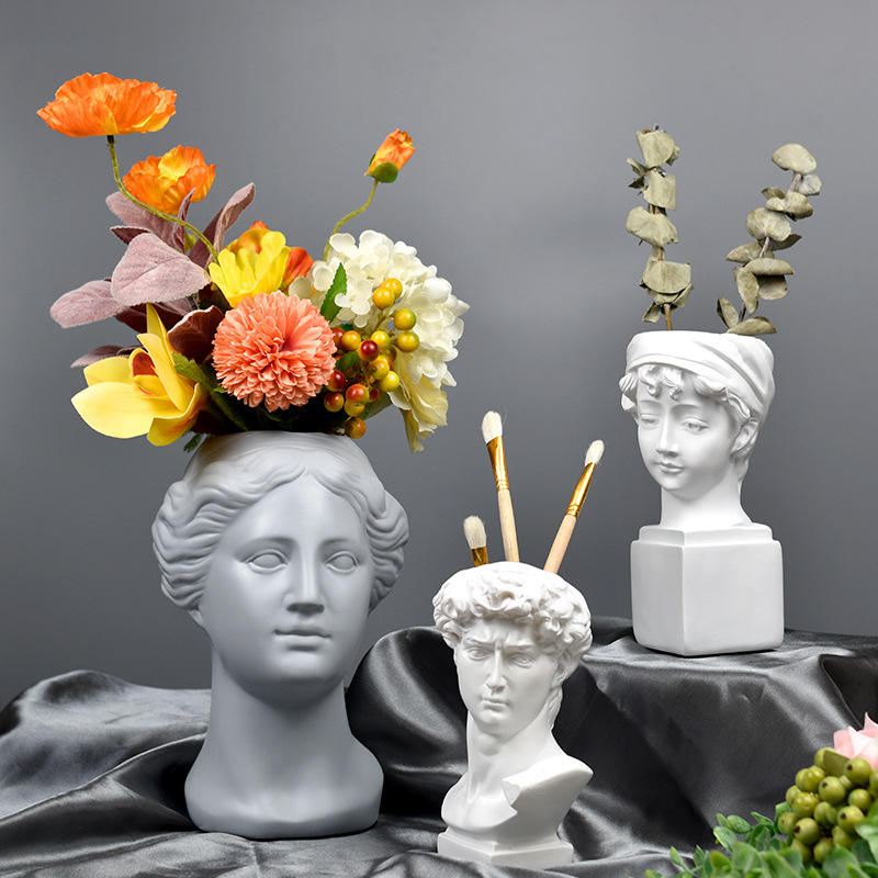 Nordic Art Folk Style Flower Vase and David Head Statue Small Creative Home Decorative Crafts for Living Room