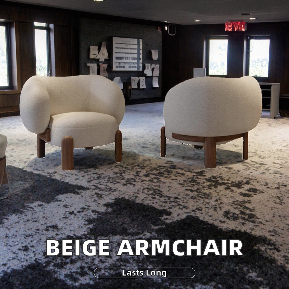 Nordic Boucle Beige Fabric Single Armchair Durable Leisure Chair for Hotel or Apartment for Living Room or Modular Sofas