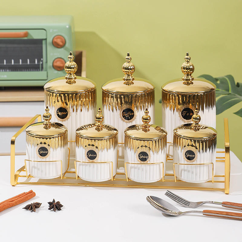 Nordic Ceramic Airtight Storage Jar Large Capacity Cylinder Metal Lid For Kitchen Grains Cereals Decorative Container