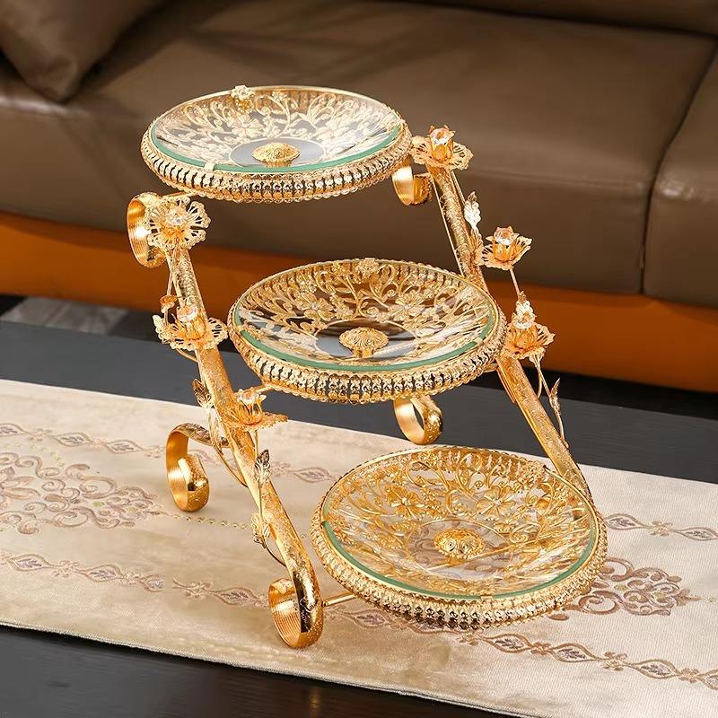 Nordic Creative Food Shelf Dry Fruit 3 Plates Serving Crystal Glass Tray Decorative Cake Stand Fruit Plate