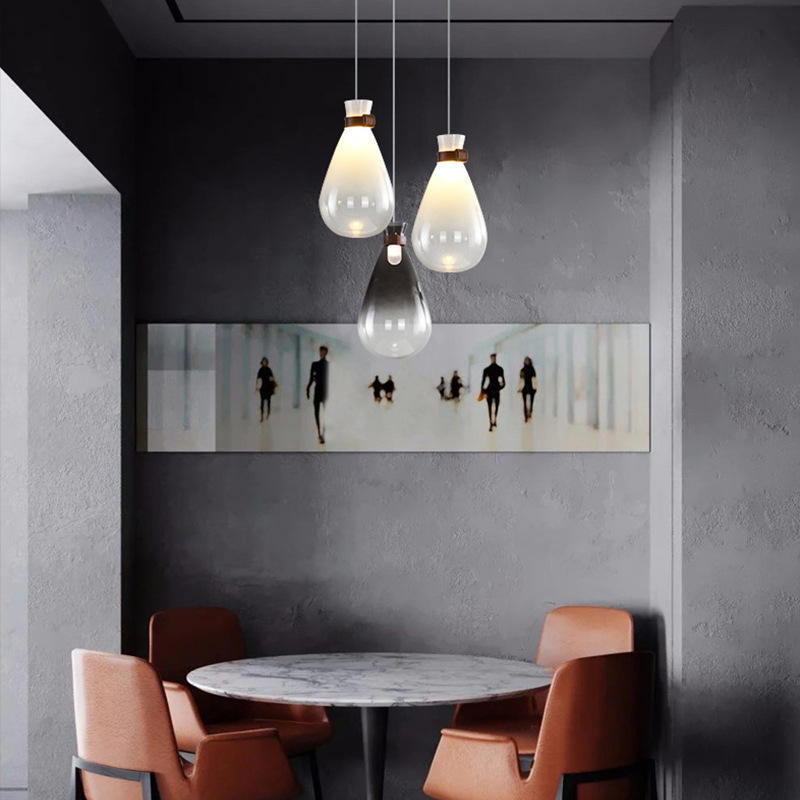 Nordic Designer Multi-Head Balloon Leather Chandelier Teardrop Glass Pendant for Living Room Dining Room Bar Counter Chandelier
