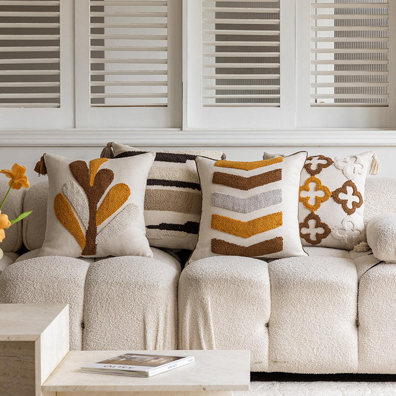Nordic Embroidered Velvet Cushion Cover Square Multicolor Living Room Pillow Case With Autumn Leaves Pattern 4545