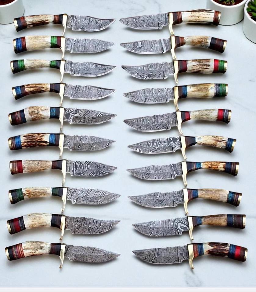 Nordic Forge Industrial Grade Damascus Steel Skinner EDC Fixed Blade Knife Other Handle Brass Bolster Leather Sheath OEM Knife