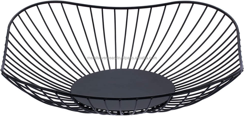 Nordic Fruit Bowl Metal Wired Black Powder Coated Vegetable Bowl for Dining Table Kitchen Essential Wrought Iron Bread Basket