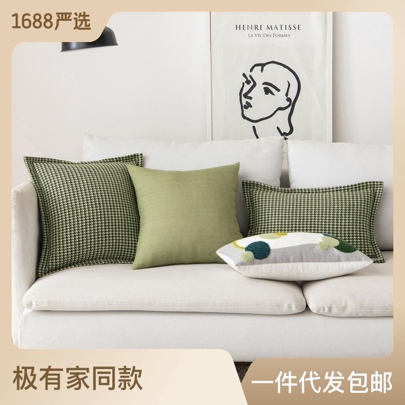 Nordic Geometric Pillowcase Square Houndstooth Pattern Polyester Embroidered Home Living Room Cushion Case