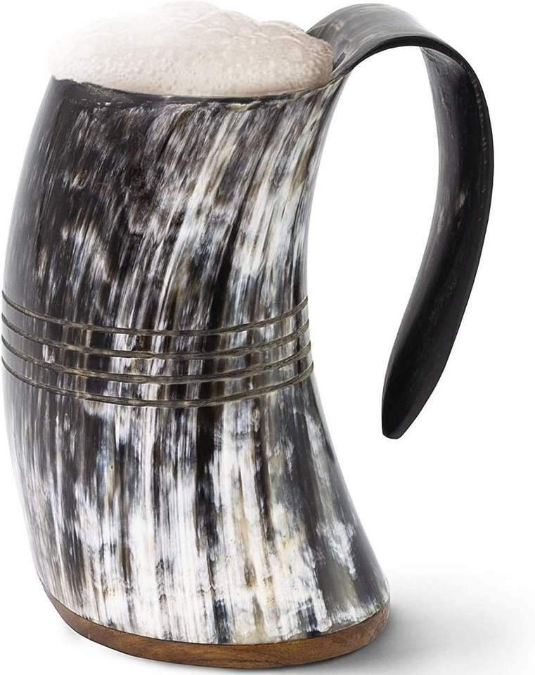 Nordic Hand Carved Vikings Bull Horn Crafted Mug Tankard Jug Polished Vessel for Beer Ale Wine Spirits Water Inspired by Vikings